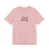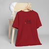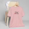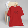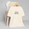 Soft, breathable, and quietly faith-filled. This lightweight jersey tee carries a simple message — God loves you — in an elegant script with a small red heart that feels like a private reminder you can wear all day. The retail fit drapes easily for layering or standing alone. It settles into your routine: worn to morning coffee, tucked into jeans for a community gathering, or slipped on after Sunday service as a calm, confident statement of hope. The fabric is airy and comfortable, and the crew neckline keeps the look neat and approachable. This shirt reads like a gentle invitation rather than a proclamation — familiar, warm, and effortless.