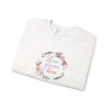 A soft, cozy crewneck sweatshirt with a gentle, botanical design that reads “Love grows here.” The light, nature-inspired wreath of blooms and leaves sits subtly on the chest, giving the sweatshirt a quiet, homey charm. Built from a medium-heavy 50/50 cotton–poly blend, it feels warm without being bulky and holds its shape thanks to ribbed collar and double-needle stitching. Lightweight enough for layering and tailored with a classic fit, this sweatshirt slips into slow mornings with coffee, plant care sessions, or relaxed gatherings. The muted palette and delicate embroidery/print make it feel thoughtfully handmade — like a wearable reminder of home and small, intentional moments.