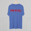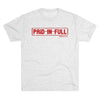 A lightweight tri-blend tee with a clean, stamped-style graphic reading "PAID IN FULL" and a small Romans 6:23 reference. The soft heather fabric drapes effortlessly and feels lived-in from the first wear. It’s designed for quiet confidence — a subtle faith statement that works layered under a jacket or alone with jeans. The distressed red stamp gives it a vintage, worn-in look that speaks of grace and relief rather than loud proclamation. Wear it to church gatherings, volunteer days, or casual meetups where your message is gentle but clear.