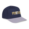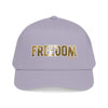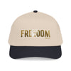 A structured mid-profile baseball cap that channels a rugged, Americana energy. The front features bold FREEDOM lettering with a textured, slightly worn look that reads like a well-traveled patch. The two-tone design—muted charcoal crown with a darker brim—keeps the look grounded and versatile. Wear it on morning drives, road trips, or backyard gatherings; it settles easily into everyday rotation and carries a quiet, determined vibe rather than shouting for attention. The seamless front panel keeps the embroidery or print crisp, while the matching undervisor and sweatband add a pulled-together finish. This cap sits comfortably and adjusts with a durable snap closure so it feels broken-in from the first wear.